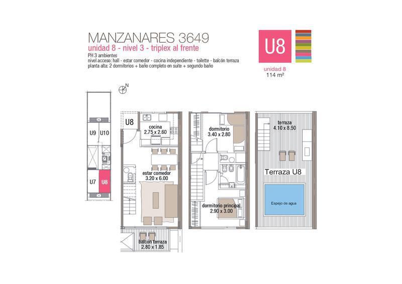 ESPEJO DE AGUA UNIDADES TRIPLEX PARRILLA PROPIA Y TERRAZA PREPARADA PARA PISCINA