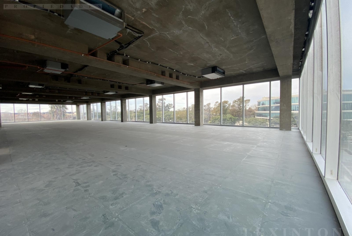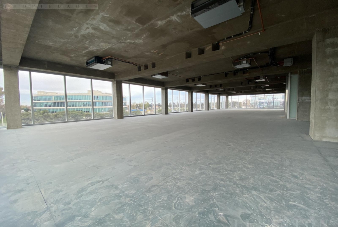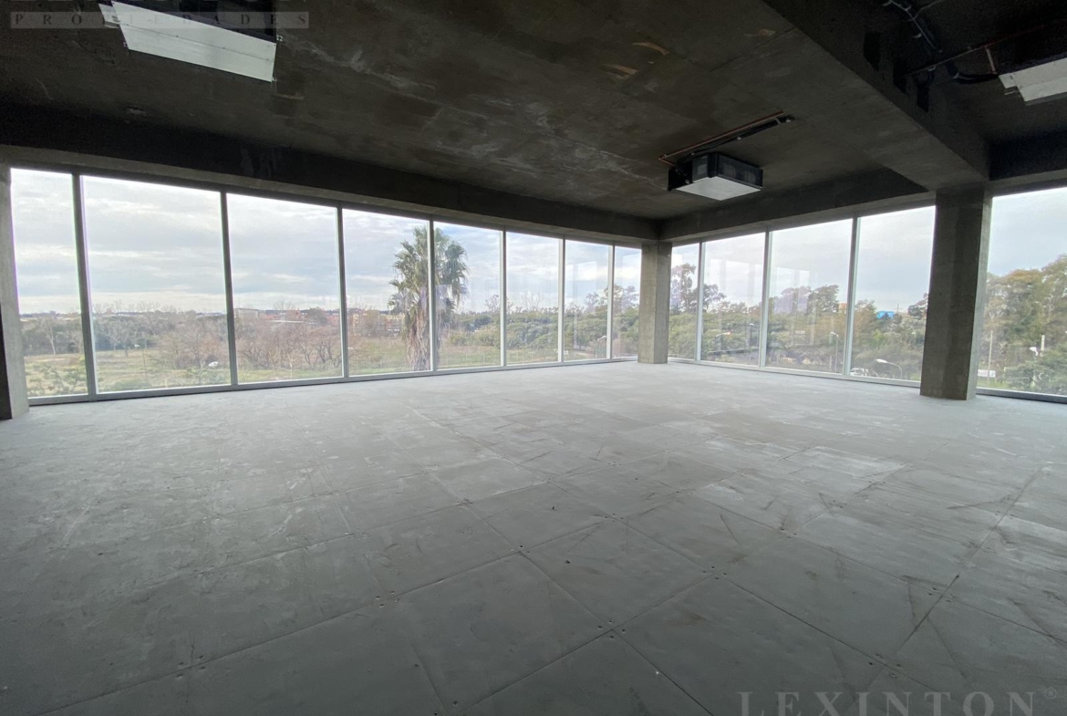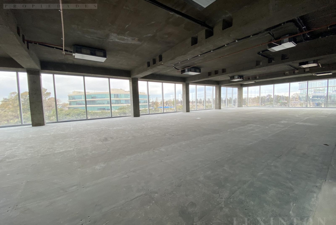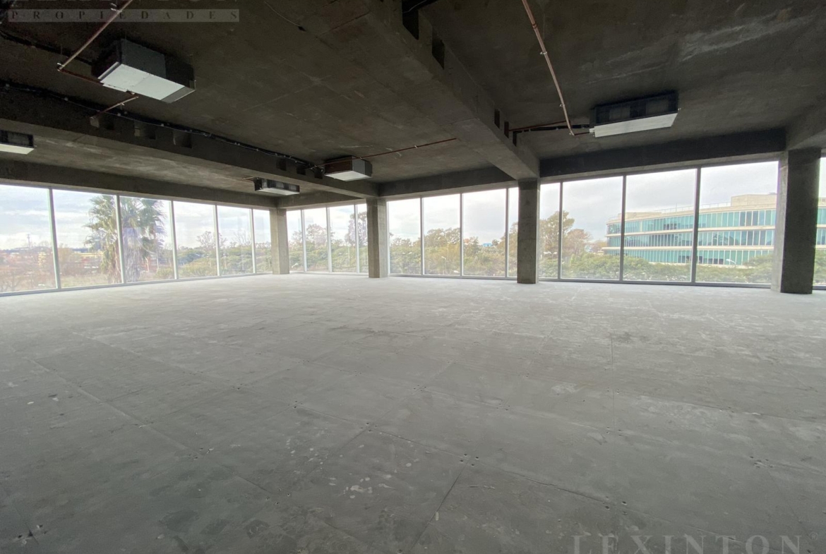 La oficina es un semipiso, planta libre todo vidriado DVH de piso a techo con control UV, con increíbles vistas abiertas al Golf de Boulogne, Panamericana y espacios verdes.
