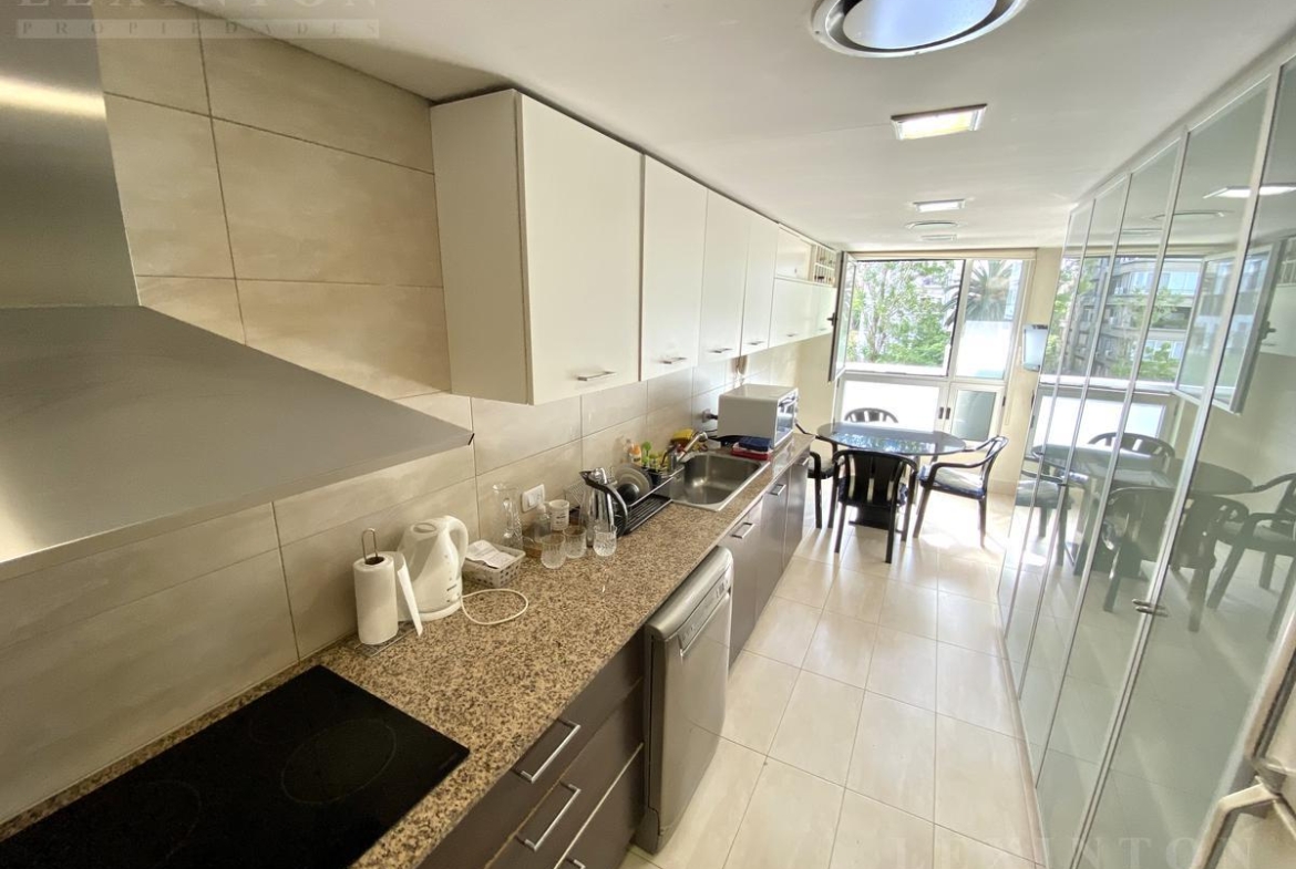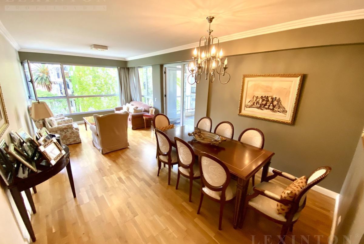 Palier privado. Luminoso living comedor con ventanales y salida a balcón terraza. Gran balcón terraza con vista abierta. Cocina completa con sobre y bajo mesada y comedor diario. Lujoso dormitorio principal en suite con vista abierta, doble baño y vestidor. Amplio segundo dormitorio con placard y salida a balcón terraza. 1 toilette. Gran dependencia + lavadero. Posibilidad de 3er dormitorio de fácil conversión.