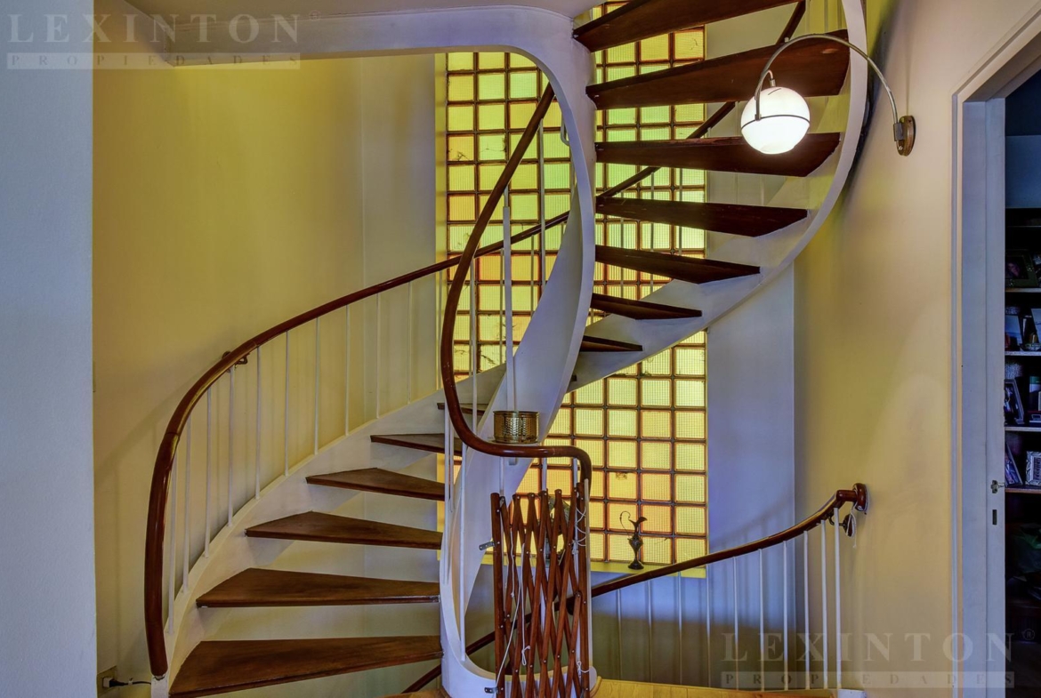 La casa tiene escalera de servicio que va desde la cocina al subsuelo. La escalera principal comunica la PB con los pisos 1 y 2.