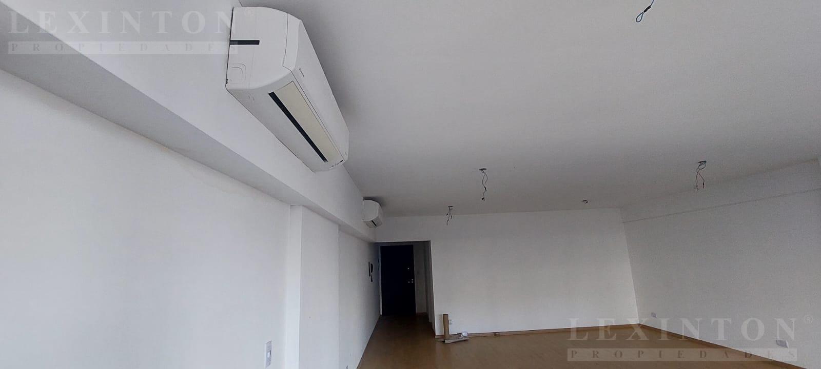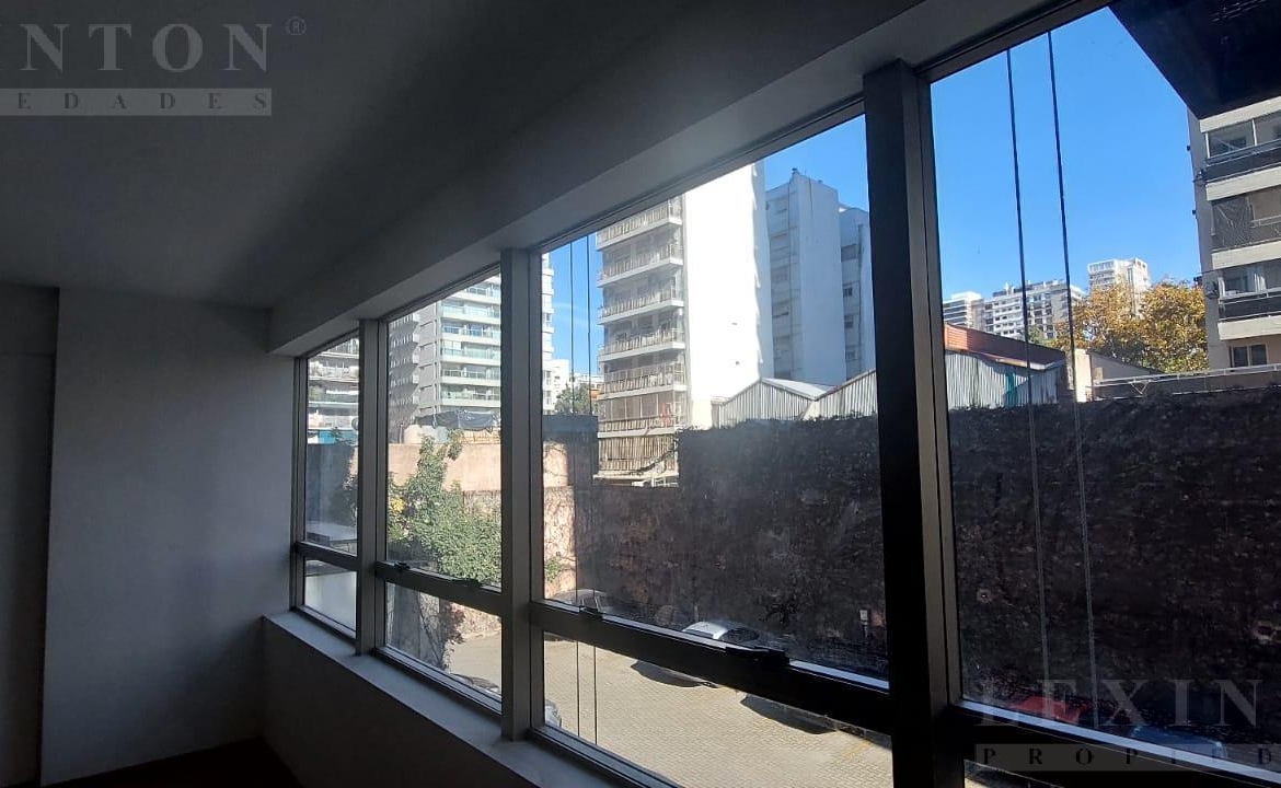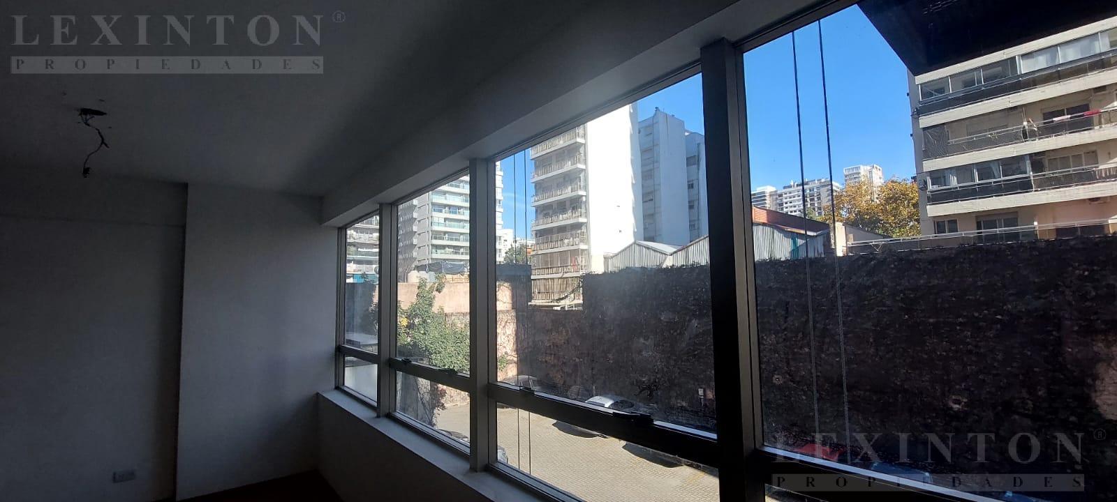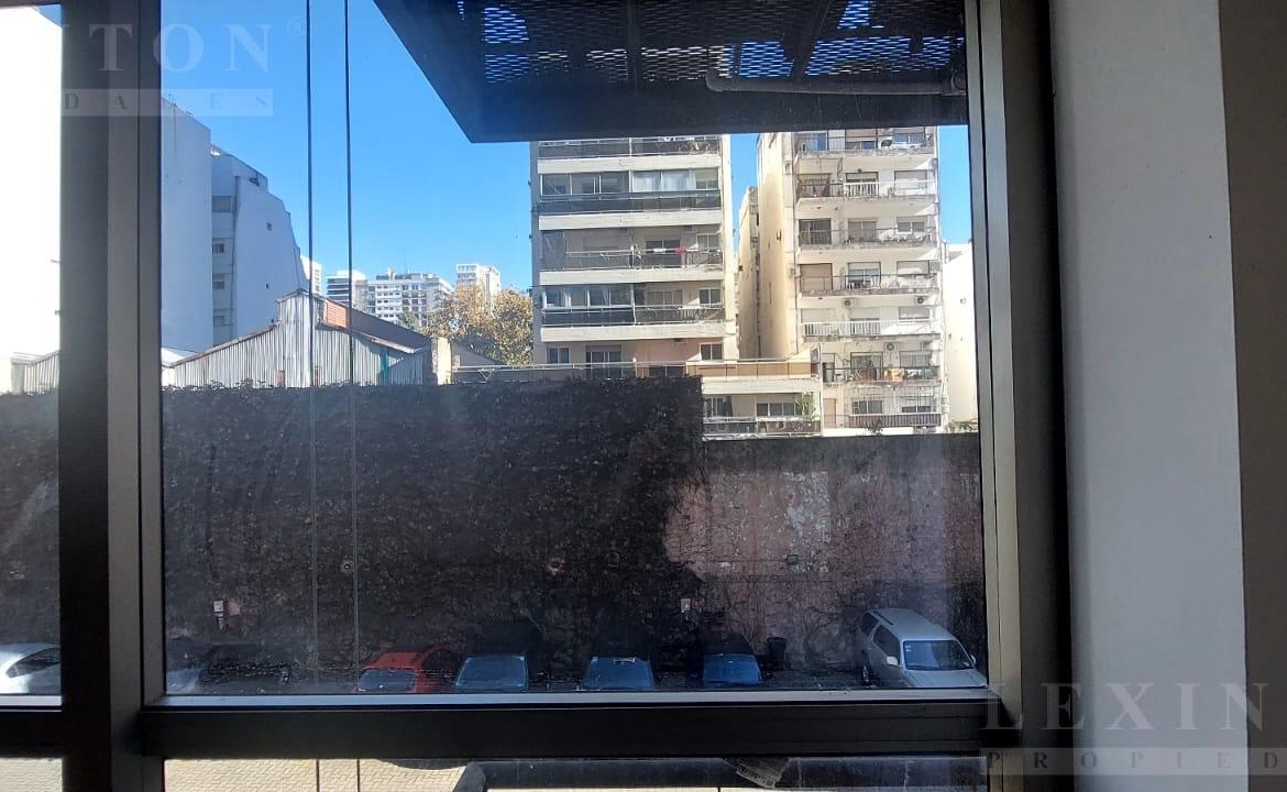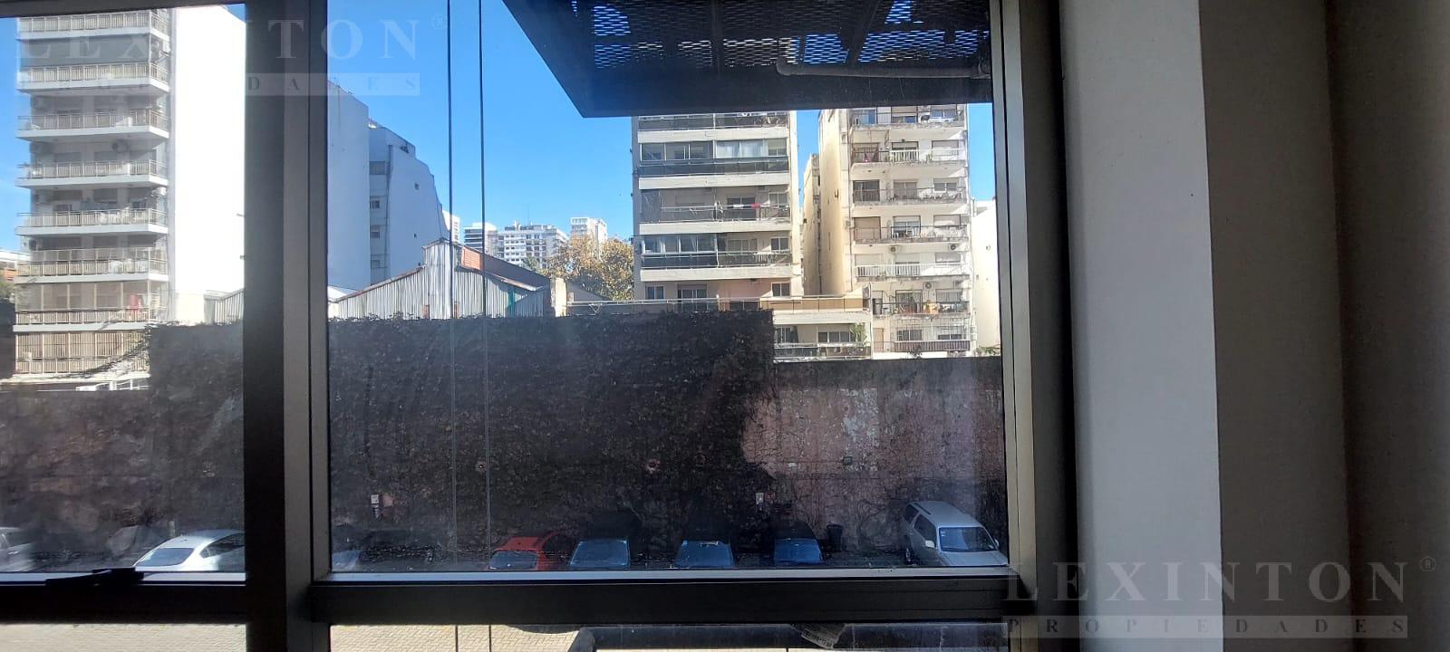 Oficina en 2do piso, planta libre de 48m2 al contrafrente, ventanales a las cocheras del edificio, pisos flotantes, dos equipos split de Aire Acondicionado F/C