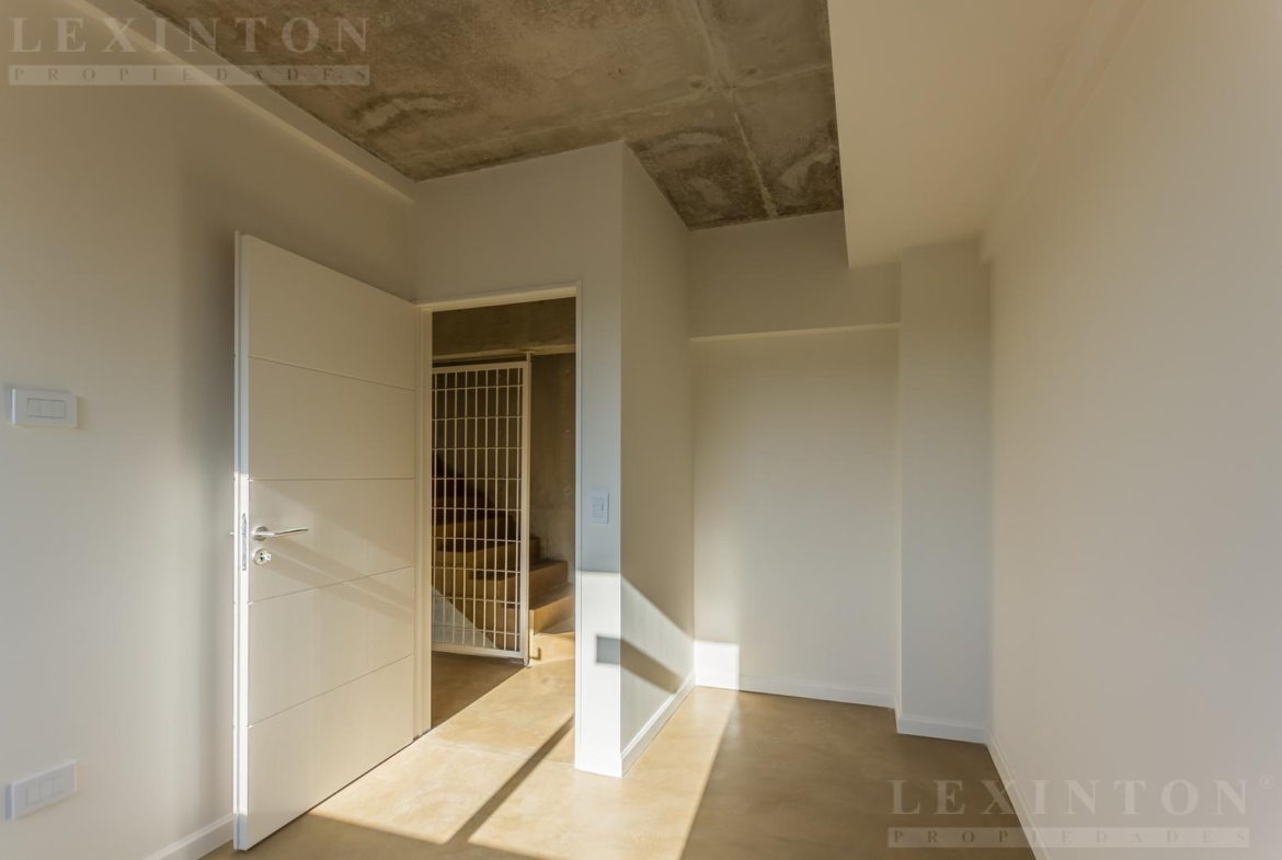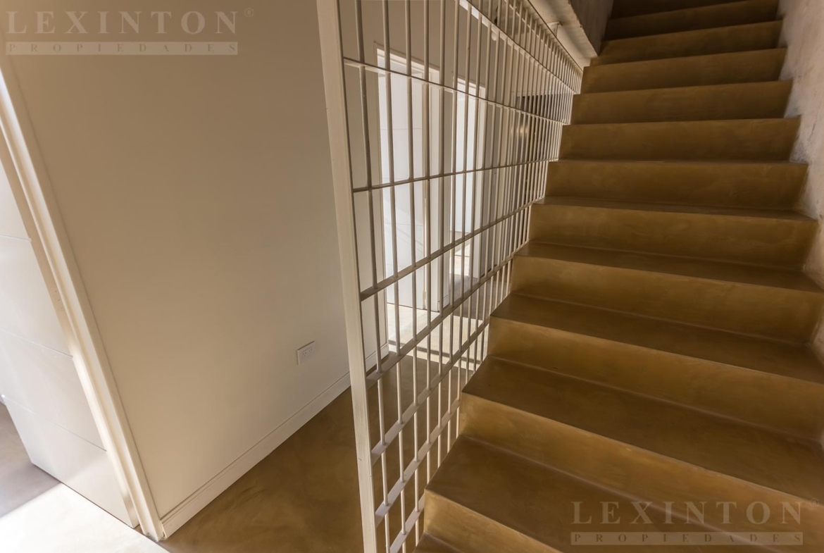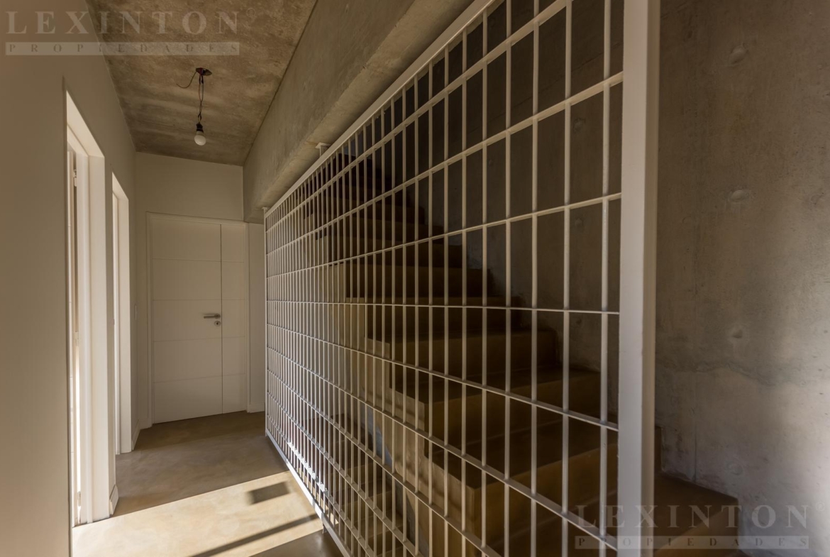 En segundo piso por escalera, se encuentran los tres dormitorios, con baño completo, ventanales al contrafrente, pisos de cemento alisado, techo de hormigón a la vista