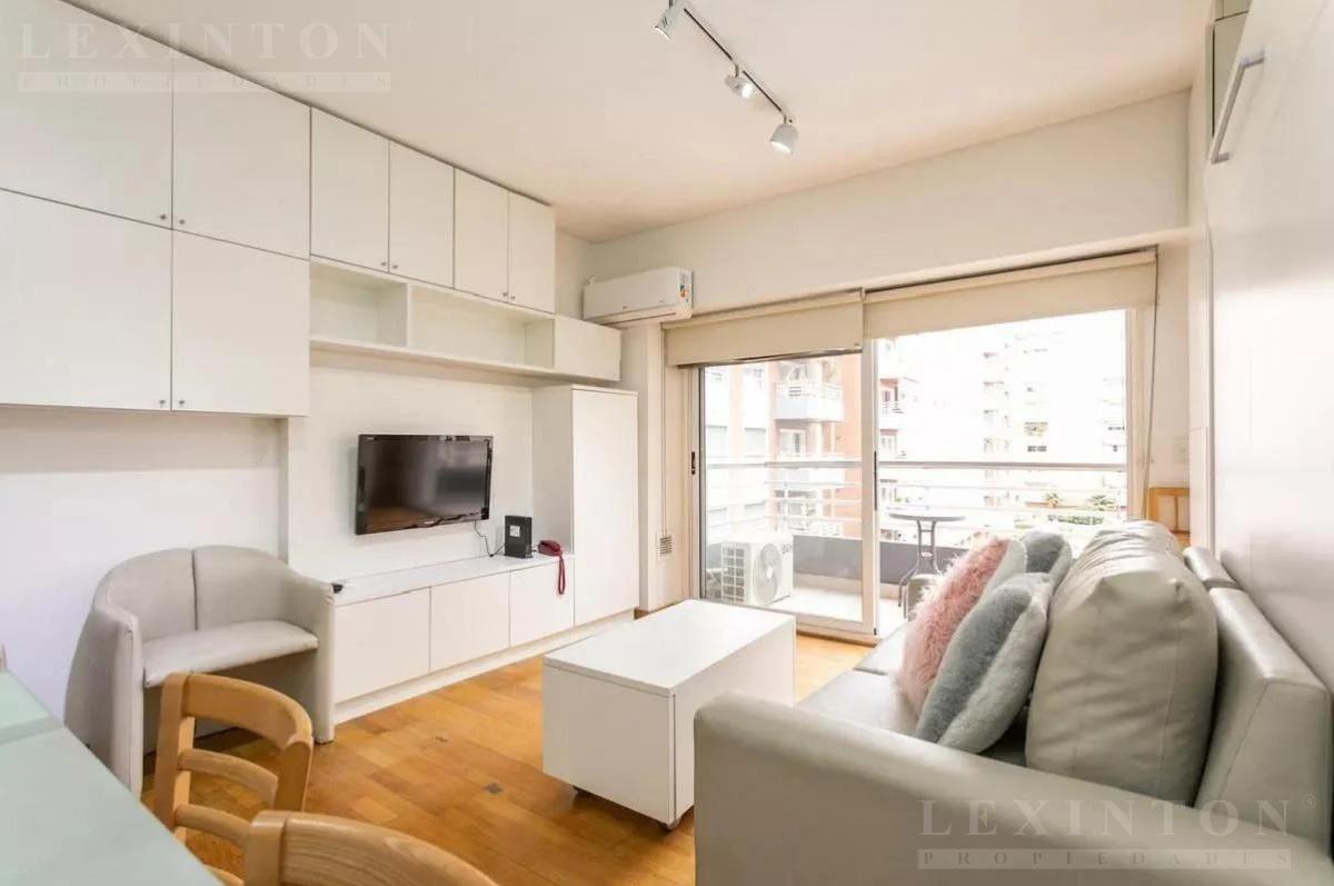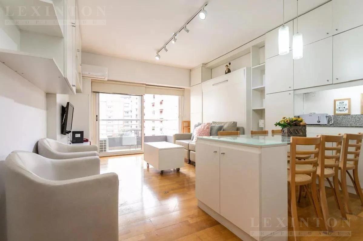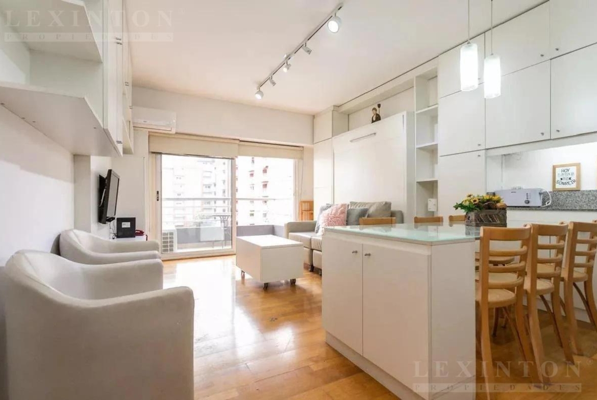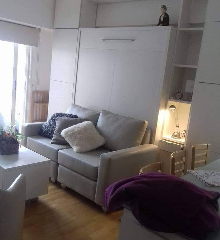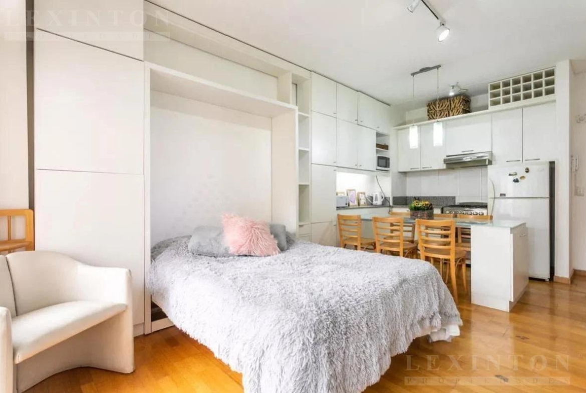 Dique 2 Puerto Madero. Monoambiente con mobiliario de diseño a medida y cama rebatible que permite transformar fácilmente el ambiente