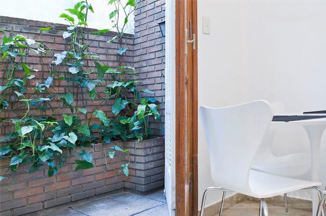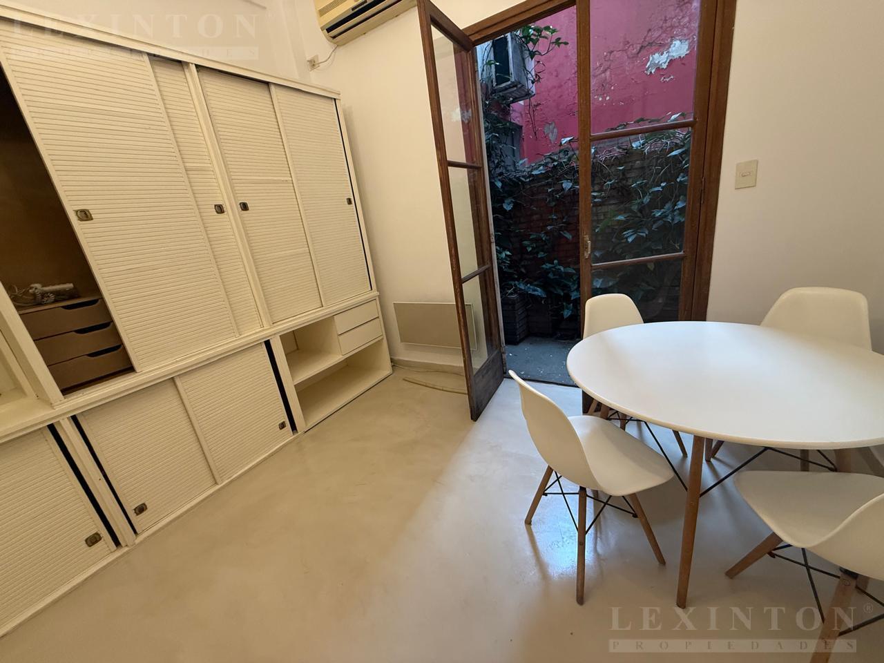 Primer patio: 2 m x 2 m, con luz natural.Cocina independiente.Baño completo con ducha.Ambiente principal de 6 m x 4 m.Segundo patio: 2,5 m x 1,4 m, con frente propio.
