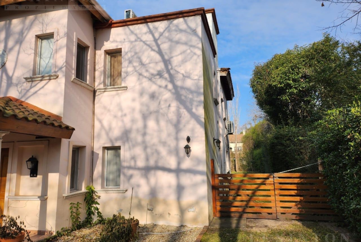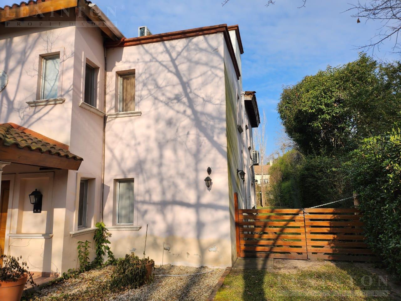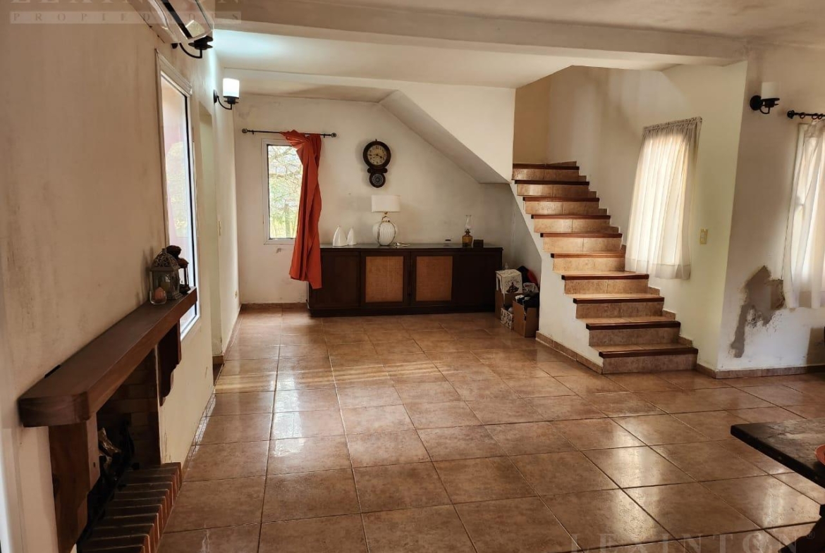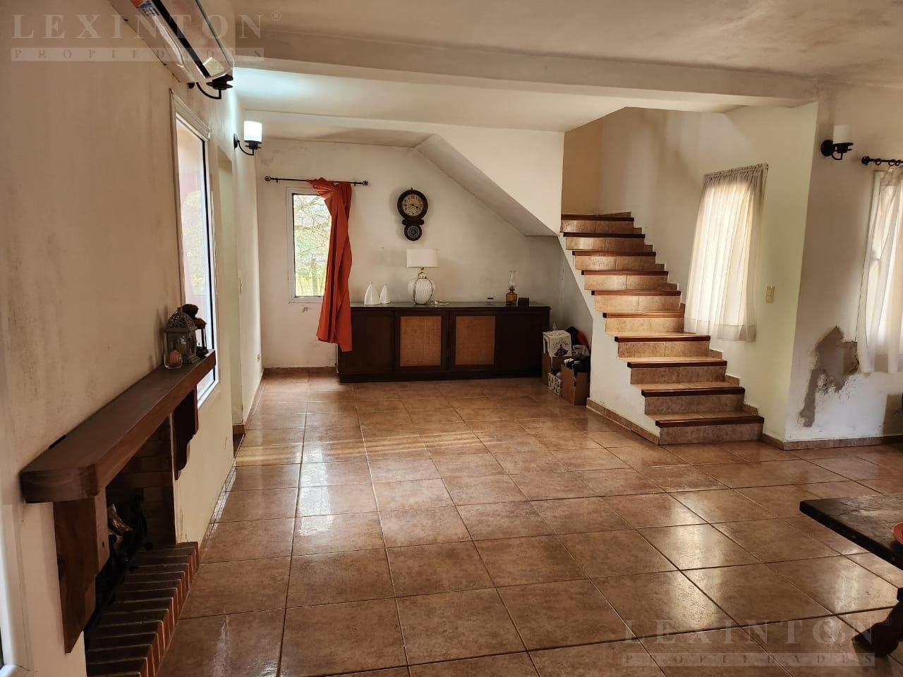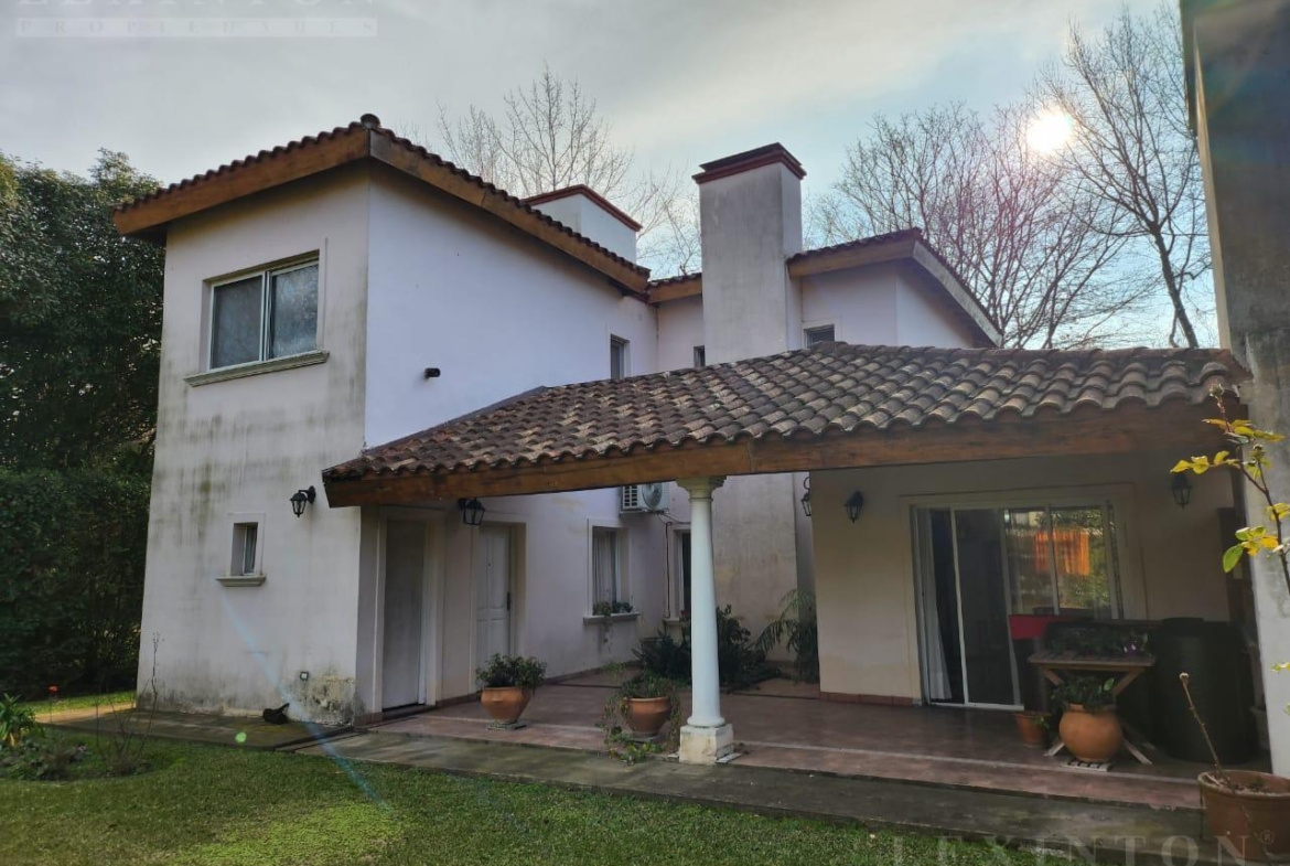 Excelente casa de sólida construcción. Cuenta con 2 dormitorios en P. Alta y Dependencia de servicio/Lavadero. 2 baños completos.Se encuentra sobre lote central de 836 m2 (20×41,80) en Barrio Cerrado Villa Rosa, totalmente consolidado y con añosa arboleda.