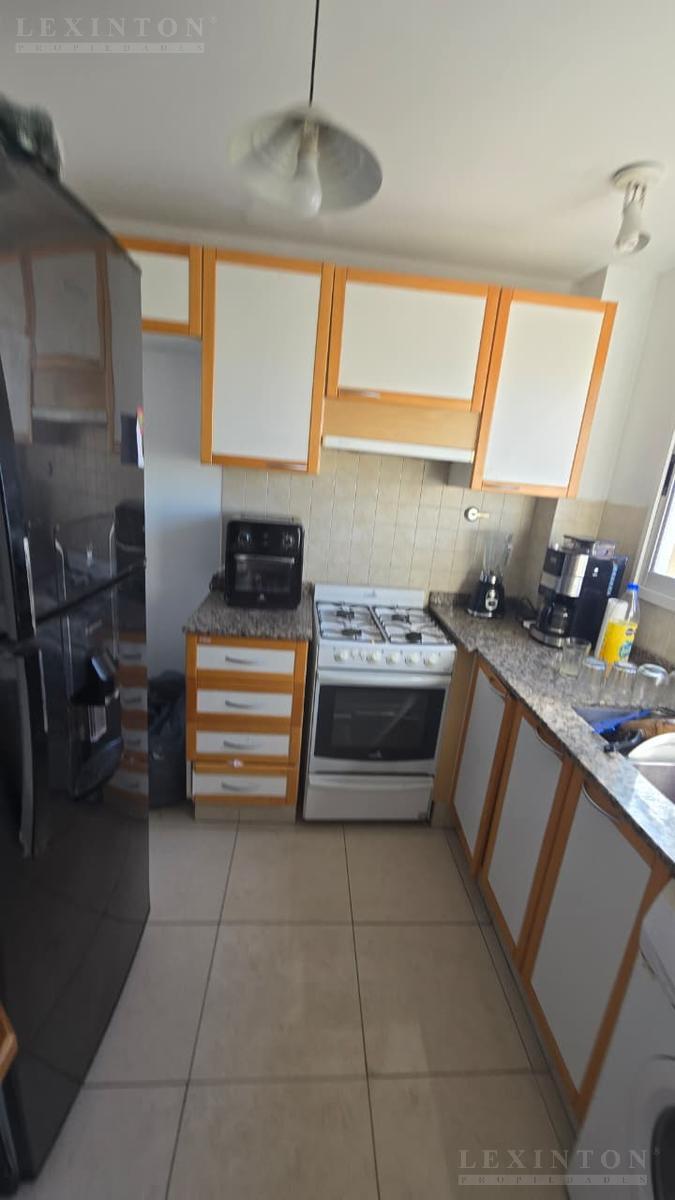 cocina completa con muebles altos y bajos, y balcón al frente semicubierto con lavadero incorporado.