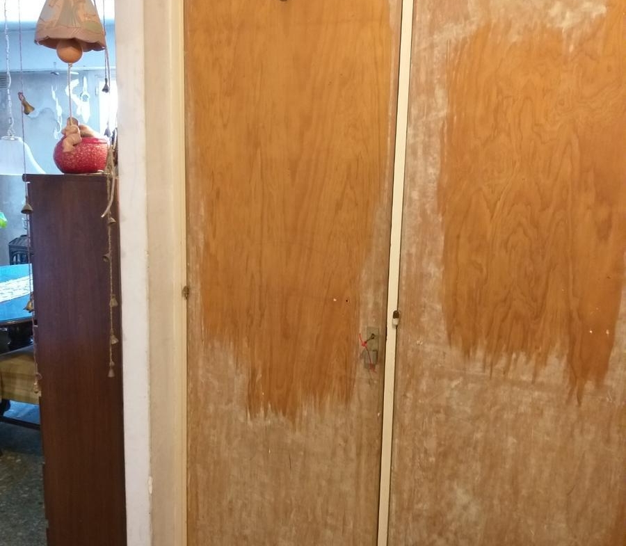 Cocina azulejada hasta el techo, con termotanque eléctrico, barra pasa platos con detalles a terminar. Muebles bajo mesada a renovar. Placard 4 puertas,